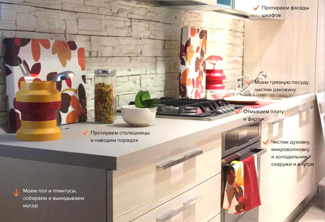 Почистим плиту, столешницу, смеситель, раковину и рабочий Pinco | + | + |