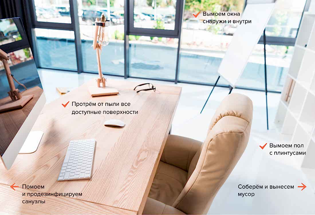 Ничего специально оставлять не нужно, у нас всё есть: стремянки, мопы, профессиональные пылесосы, Pinco вот это всё.